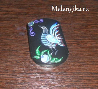 Сегодня мы к вам с Городецкой росписью на поверхности зеркала-слайдера. В работе принимали участие акриловые краски по стеклу и керамике фирмы "Декола", а также акриловые контуры (зеленого, фиолетового, черного и белого цветов). Из всего многообразия птиц городецкой росписи нам очень понравилась птица с пушистым хвостом, и мы непременно решили ее изобразить. И вот что у нас получилось: